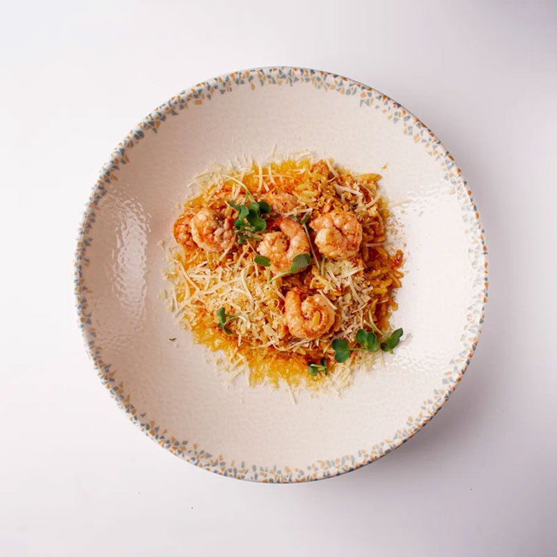 Паста ризо с креветками в соусе том ям