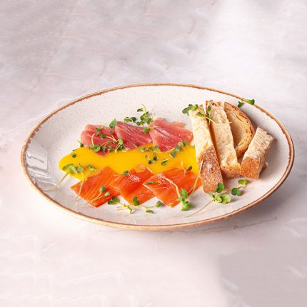 Малосоленые семга и тунец под соусом маракуйя