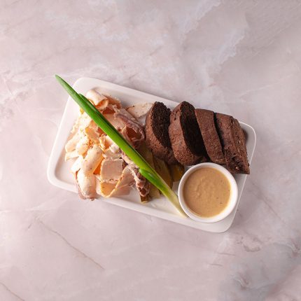 Сельдь астраханский залом с паштетом из астраханской сельди и бородинскими гренками