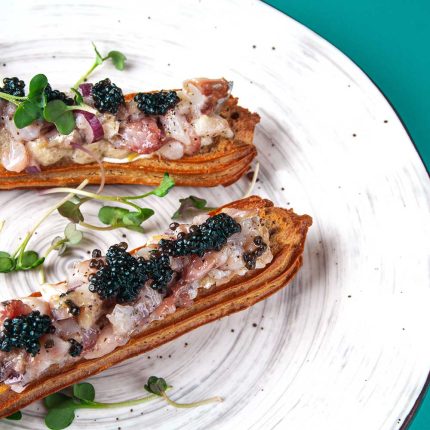 Эклеры с креветкой, лососем и водорослями чука со сливочным кремом